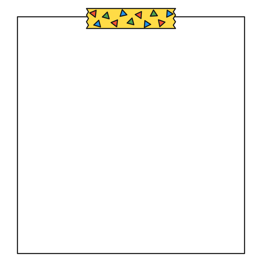 メモ帳をマスキングテープで貼り付けている風のフレーム素材です。カラフルな三角形が散らばるポップなマスキングテープにしました。保育園や幼稚園の園だよりなどにお使いください。